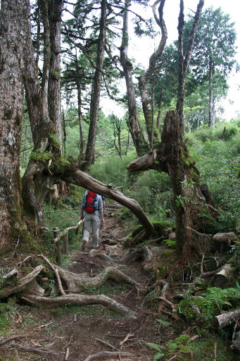 鑽過倒樹,稍後往左陡上。H2256m |