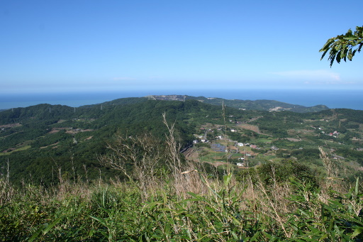 回到稜線錯開的十字路口,循稜回登山口,山路較少人走,路況尚可。稜線沿途幾乎都是箭竹,但並不礙事。陡下處展望極佳,可俯瞰竹子山腳山,俯瞰金山海岸線。偶有芒草出現,也還好而已。偶然回頭,可遠眺竹子山東北峰之大型反射板。H623m |