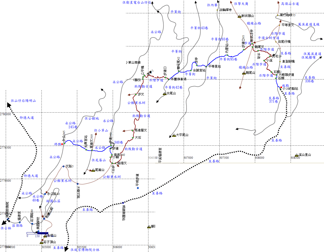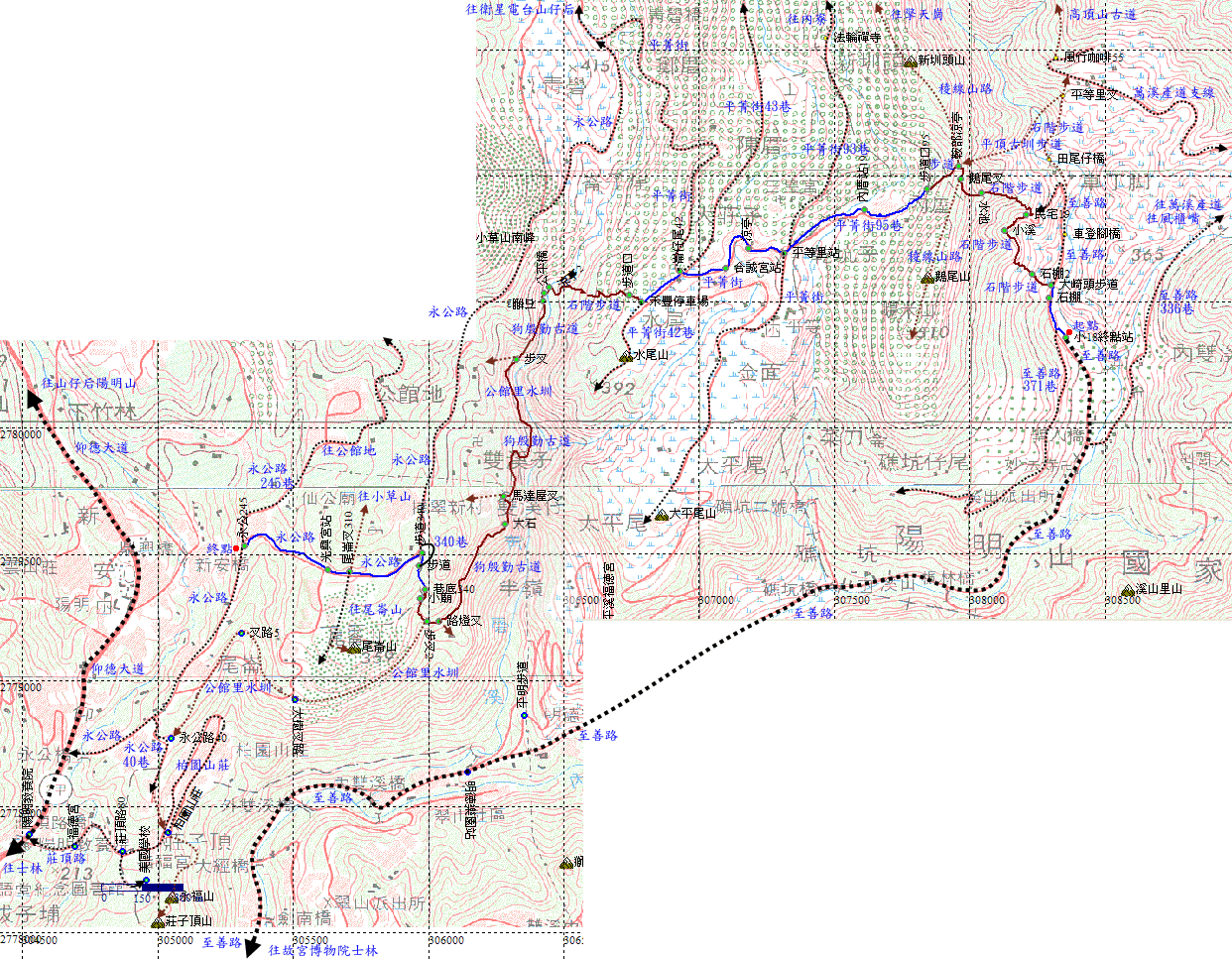 小18公車終點站,至善路三段路底附近,出發。捷運劍潭站集合後,原本計畫搭小19到平等里內寮站走內寮古道上擎天崗,不過看到小18的大車先來,就想說反過來走也不錯,結果陰錯陽差,走出來的路線跟計畫完全不同。H261m |