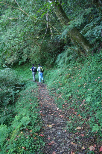 拉拉山登山口,左上往拉拉山約60分,取左,一路往上略陡。沿途有些山毛櫸落葉滿地,真是早熟。H1714m |