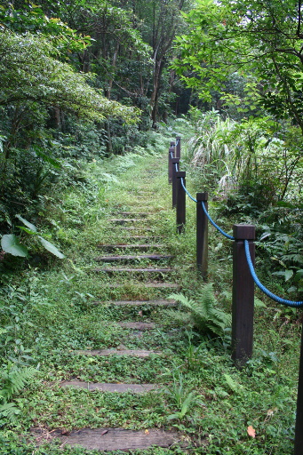 粗坑口步道入口,位於產道過橋後,指標與解說牌一應俱全。粗坑口步道全長約700公尺。石階步道一路往上,略陡。有些段落則鋪設枕木,比較不滑。H158m |