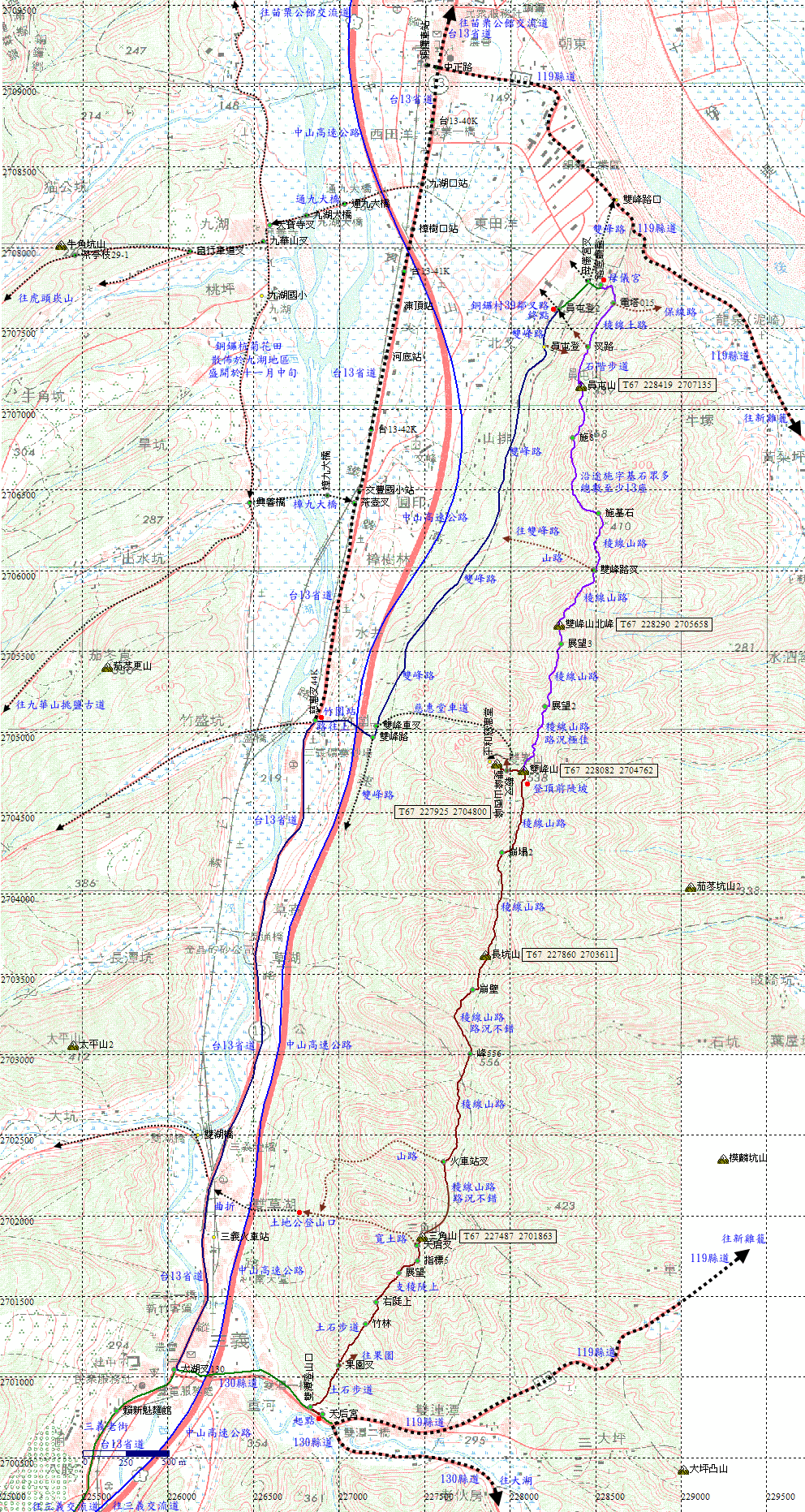 雙峰路天鳳母儀宮叉路,十字路口,距離停車處約兩百公尺。休息整隊。H230m |