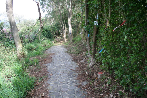 回到涼亭旁叉路口,續行往三段崎古道。稍後立刻轉為石階步道,毫無古意。幸好只是小小一段,不久轉為傳統的卵石步道,路況極佳,坡度並不陡。H179m |