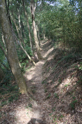 續行,石板步道稍後轉為土路,路況極佳,一路循稜。偶有展望,但由於山勢過低,加上樹木阻擋,視野並不好。 |