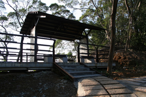 步道涼亭,位於產道叉路口旁,左上石階步道往涼亭,右側產道不遠處即是三段崎古道起點。下山高幹44支14。至涼亭休息觀景。俯瞰山下的平原地帶。H179m |