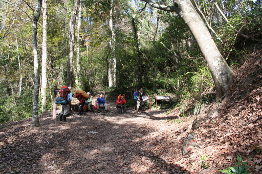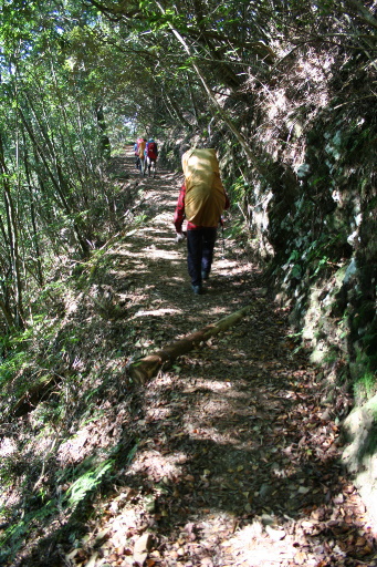 重裝出發,國家步道風景優美、路況極佳。古道前段的柳杉林極為優雅。 |