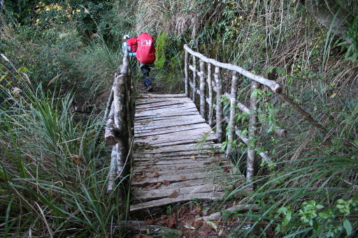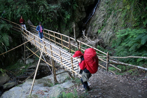 小瀑布竹橋,前鋒隊友已在此等候午餐。H1360m |