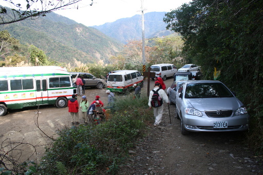 霞喀羅古道養老段車行終點,停滿了小巴與轎車,養老段真是超熱門,回程總共遇到三四百人進入古道。霞喀羅步道22K。搭上中中巴士,出養老,秀巒檢查所繳交入山証,一路循竹60鄉道回,過延老後轉往李棟山莊續登。H1283m |