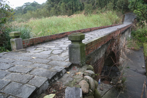 太平橋,橋前約15公尺左側,豎立「太平濟安二橋」建橋石牌。建於大正十五年(1926)。橋上看起來頗不起眼。繞至側面,原來是三孔拱橋,但只剩一原孔。H191m |