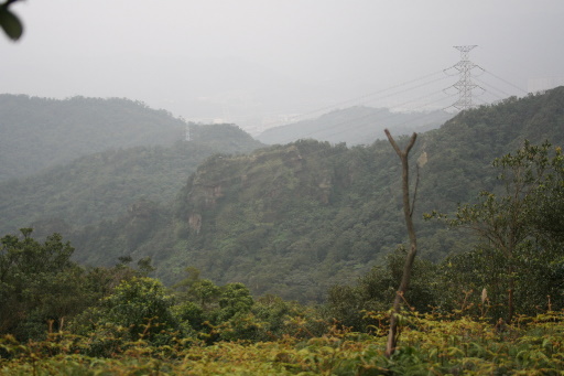 大成街57號民宅,循水泥產道下山。產道繞經北二高旁,隔著鐵絲網圍籬,七堵收費站就在旁邊。眺望石獅山。眺望石象山。H114m |