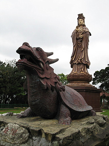 龜山頭山,219m,又稱龜山,山頂為大平台,上面有大觀音像,與龍首龜身的龍龜。一等天文點,位於龍龜後方,觀音之前,水泥造的大基點,粗糙而巨大。旁邊另有內政部二等衛星控制點N907,掀開鐵蓋即可觀看。H222m |