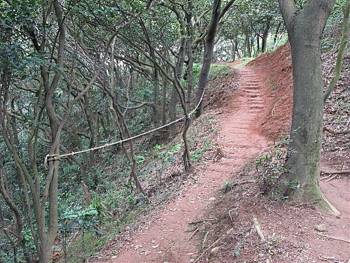 叉路,左下右上,取右陡上,發現還是切入球場車道,退回改往下切。不久又轉為平緩的土路步道。H328m |