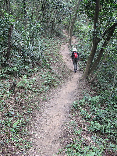 回到木椅處,稍後改取左下,主線步道頗多人走,大家似乎都蠻清楚該如此走的。沿途時而平緩,時而陡上陡下,走起來不會無聊。中途仍有許多叉路,有個往左上,銜接稜線步道,有個往右下,也許可出老莊路,保險起見,皆取主線。H291m |
