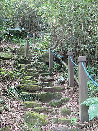 續行,石階步道一路陡上,走起來有些辛苦。這條古道由於沿途有些農地,因此常有人走,路況極佳。 |