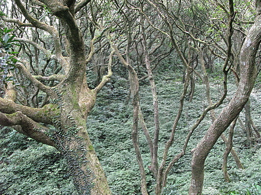 叉路,左往大屯山南峰,右往大屯山西峰,取左,山路腰繞,泥濘不堪。H909m |
