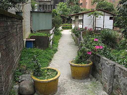 樹德街路底,左轉入水泥小徑,種了很多花草蔬菜。接上大安路後左轉,注意馬路對面的勝安宮牌樓。H29m |