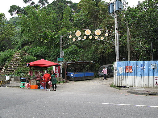 香菇亭,接上從保安街上來的車道,取左。香菇亭旁有路邊理髮,每人100。H131m |