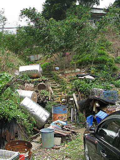 民宅,古道左轉不經民宅前,轉為清幽的土路小徑。稍後轉陡入竹園。竹園中路徑較不明確,注意路條,基本上一路往上。H112m |