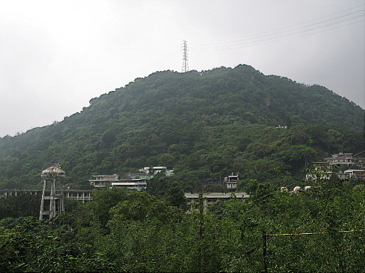 劍南路100巷15號民宅,石階步道一路往上。眺望隔壁的莊子頂山。稍後即經過另一民宅,靠近劍南路,鐵門沒關,還好。H39m |