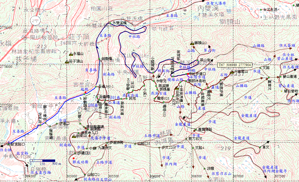 士林外雙溪至善路至善國中站,下車續前行。H34m |