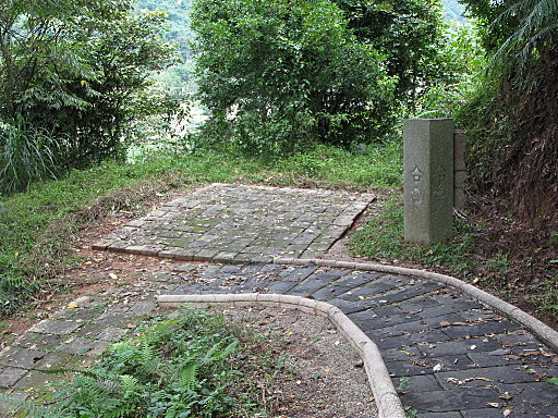 台灣地理中心碑,日據時代日人以此處為基礎,開始全台的地籍測量,立碑以誌之,戰後改建,後來因重測,地理中心改立於虎子山頂,原碑改名為「山清水秀」碑。H491m |