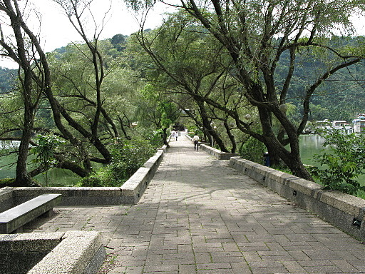 續行,直行上柳堤,顧名思義,步道兩側種滿了楊柳樹。鯉魚潭湖光山色,風景優美,是埔里名勝。眺望蜈蚣崙山、關刀山、守城大山。H540m |