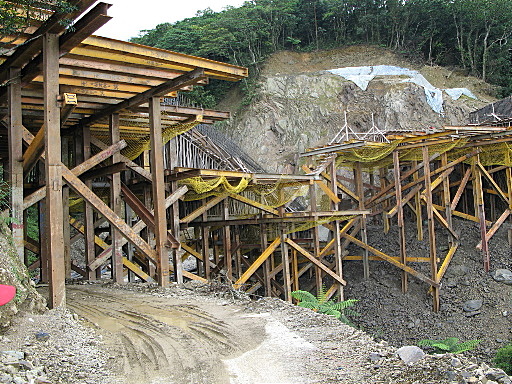 碎石大產道大橋施工處,大橋還沒建起來,道路中斷,幸好右下有條施工便道,可繞至大橋下方過溪。H732m |