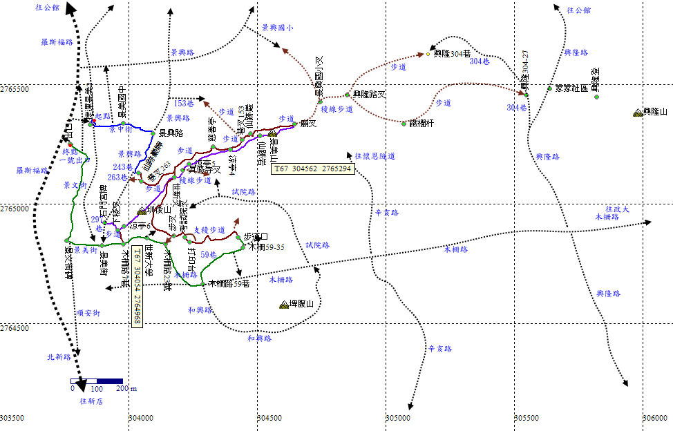 捷運景美站2號出口,循景中街直向山區。H30m |