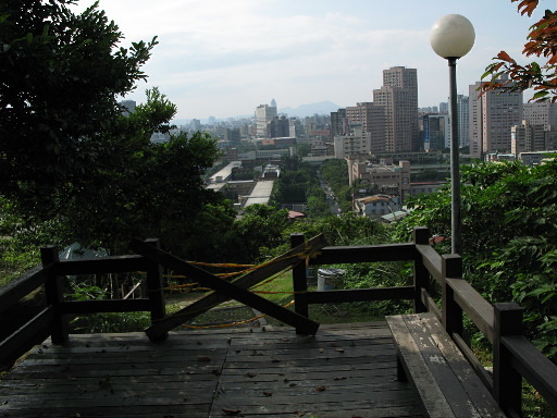 臥龍街199號對面步道口,水泥車道往上,入口設有福州山步道路線圖,上面顯示再往前一點點還有個步道口,應該是枕木階梯步道。決定循此水泥車道上山就好。車道緩上,展望極佳,眺望台北101大樓角度還不錯,頗適合拍夜景或看煙火,如果不在乎福州山曾經是公墓區的話。H22m |