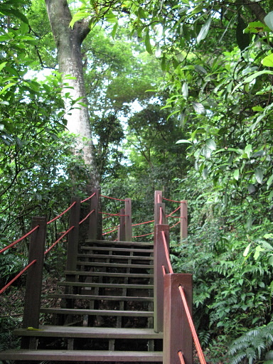 第三個戀戀蟬聲休憩區叉路,取右上探。木棧道陡上。 |