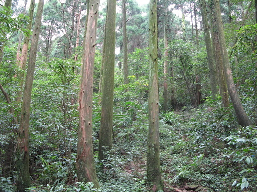 叉路,無標示,正路應取右,左路為水管路,結果選錯邊,立刻發現並橫切回正路。不久才開始出現大片柳杉林,林市古道正是以杉林如市而命名,實際上此處的杉林並沒有特別美,命名的林宗聖前輩主要還是想用來紀念其母親。H585m |