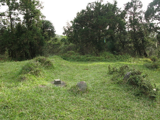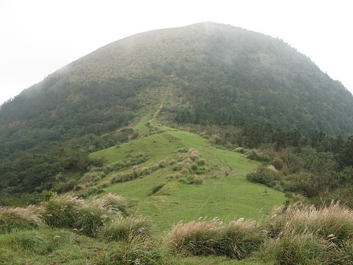 林市古道上口,抵達大尖山稜線草原,休息。展望極佳,眺望雲霧中的磺嘴山。這個草原狹長,是多條古道山徑匯聚之處,從林市古道入口開始,逆時針方向有大尖山登山口、富士古道入口、淡基橫斷古道往鹿堀坪入口、往磺嘴山步道叉路口、往避難山屋山路口、淡基橫斷古道往擎天崗入口,山界新開的山腰路入口,總共至少八條。H764m |