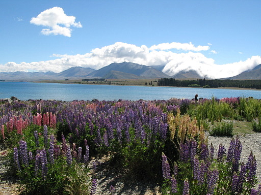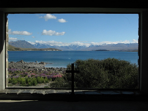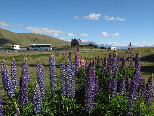 善良牧羊人教堂(Church of the Good Shepherd)一大早就來了一車車的遊客。教堂小小一間,從面對堤卡波(Tekapo)湖的窗戶拍湖景,真是經典畫面。堤卡波(Tekapo)湖畔有很多顏色鮮豔的魯冰花,拍起來更美。H719m |