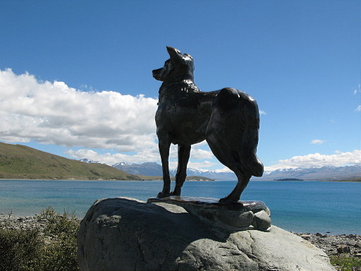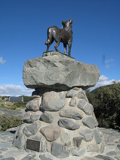 教堂外數十公尺處有座牧羊犬雕像,也是此處的地標。 |