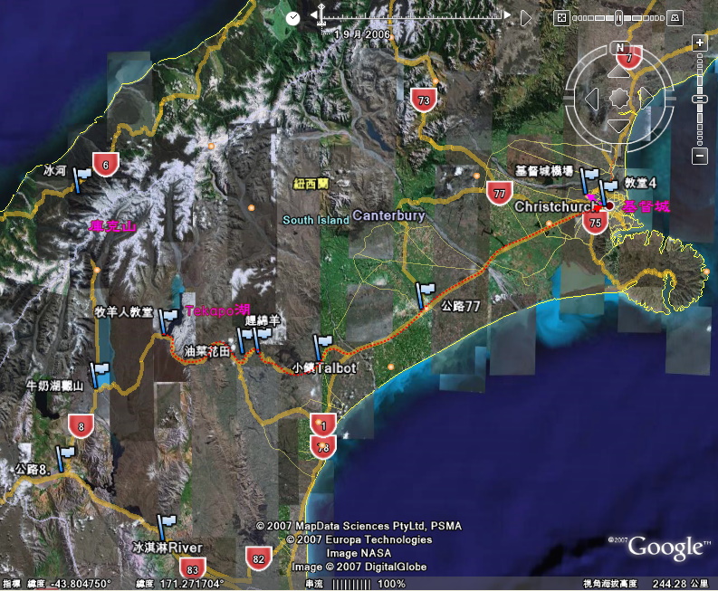 續行,離開堤卡波(Tekapo),轉往南島第一大城基督城(Christchurch)。 |