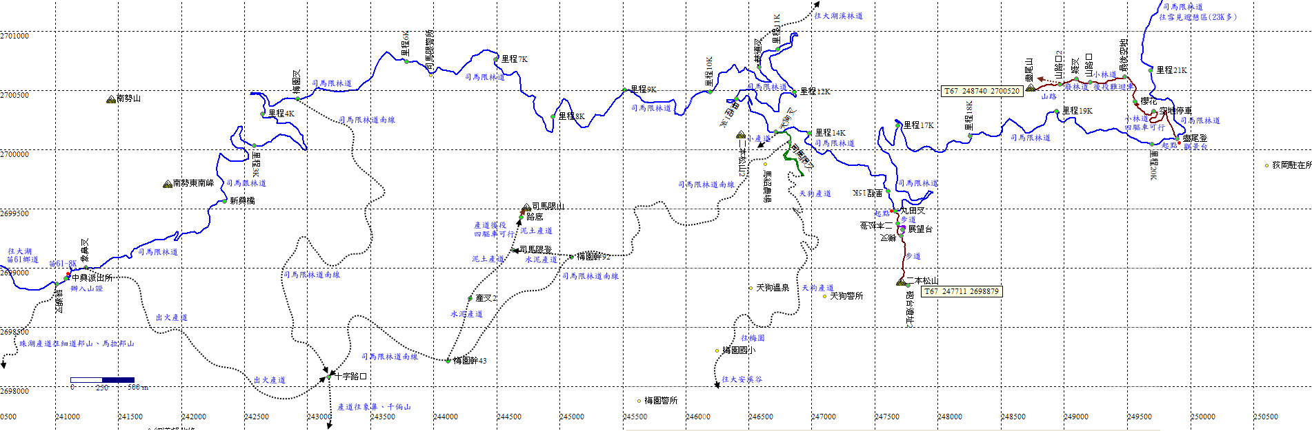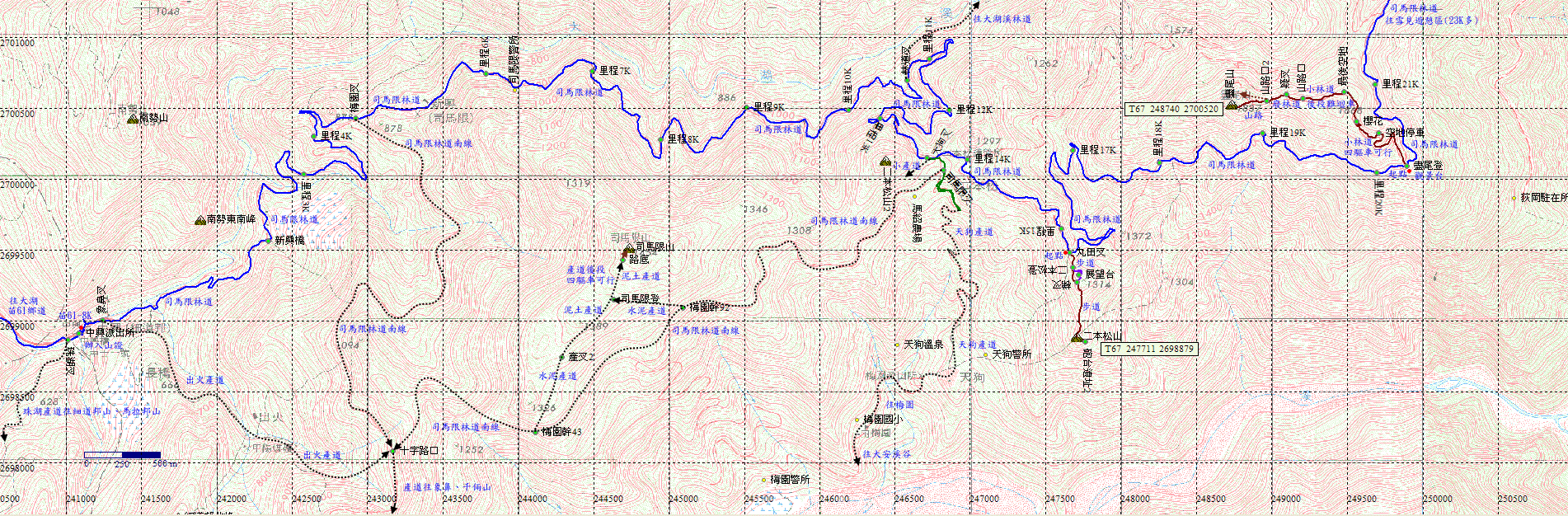 續行,原路下山,往司馬限林道約40分。 |