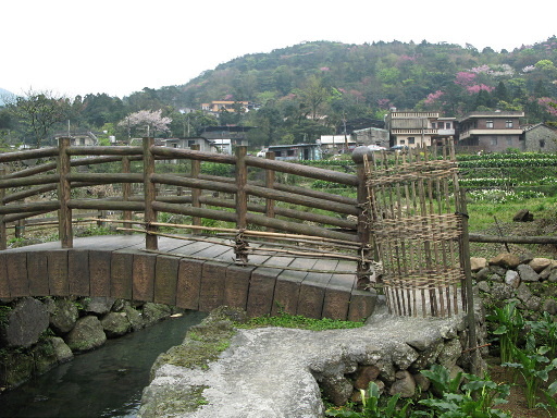 竹子湖海芋步道對面農地,附近的巨石堆間可見奇特的海芋田儲藏室。續行拿開竹籬過步道拱橋。接著就在熙來攘往的遊客群中一起欣賞竹子湖海芋盛開。H626m |