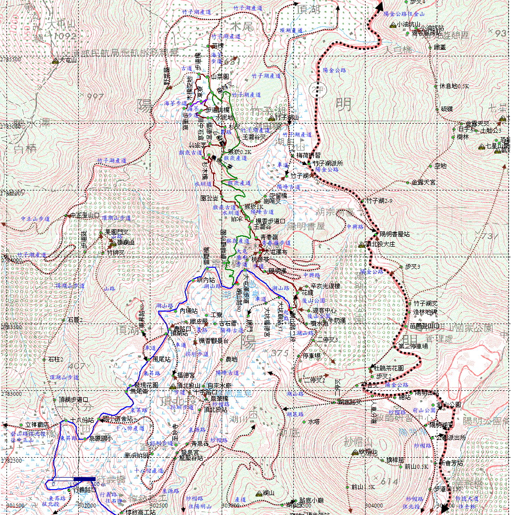 回到陽峰古道入口,續行產道往竹子湖方向。H544m |