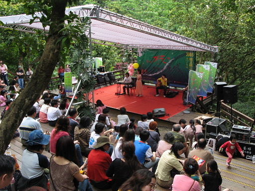 15:39 桐花公園音樂台,桐花節期間有歌手演唱,圍觀者眾。