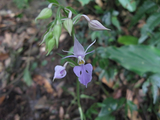 續行,山路陡上。途經雲心瀑布上游,溪中大石平坦,幽靜而舒適。 |