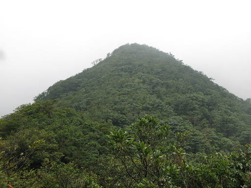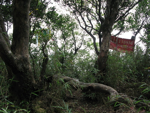 巫山,1389m,無基石,又稱樂佩山東南峰。山頂略有展望,可惜此刻霧茫茫。巫山奇妙之處不在展望,而是被展望,從福山村遠眺,乃筆直矗立之奇峰。H1398m |