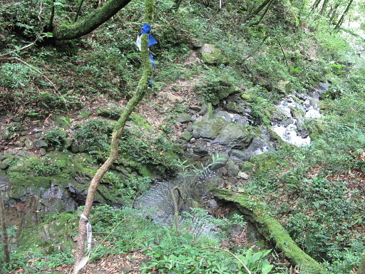 水源,繼續陡下,越往下水源越充沛,最後會到達兩條小小溪的匯流處,續往下。H1353m |