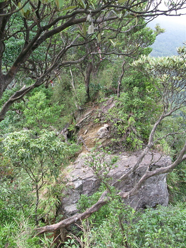 樂佩鞍部叉路,左下往巫山約100分,偏右陡上岩坡往樂佩山約25分。取左,稍往下之後轉腰繞。H1424m |