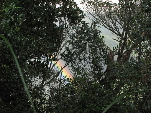 馬武督山,1021m,三等三角點No.6278。另有台灣省政府頭前溪水源保護區界25號基石。樹林圍繞無展望,因雨從林間看到一道鮮艷的彩虹。H1028m |