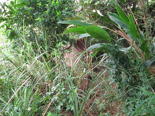 11:19 老崎步道末段因雜草覆蓋,完全看不出石階,但是踩下去又會被石階絆倒,走起來比荒涼的山路還難走。 |
