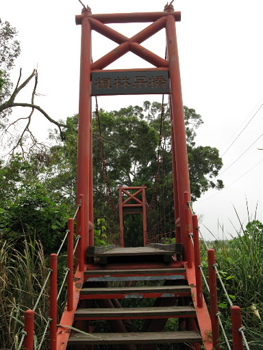 楓林吊橋,橋下並非溪流,而是產道,下方有步道口可至吊橋另一端。過橋後為叉路,直行,步道居然開始呈現荒廢狀態,有些地方長滿雜草,根本瞧不出地上有鋪設石階,真誇張,抓方向前行。H167m |