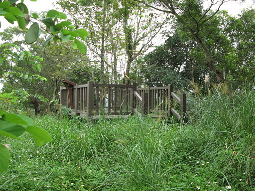 小伯公廟,位於步道下坡中途右側的草叢內,不注意很容易錯過。參觀後退回續行步道。這段步道開在台地外圍,因此展望較佳。H167m |