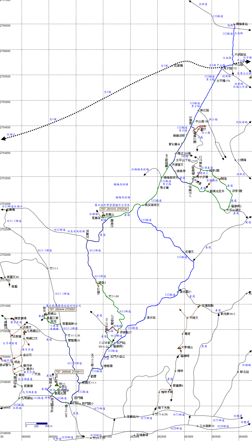 穿越中山高速公路,115縣道18K。H203m |