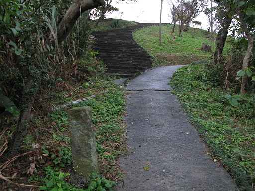 廢棄涼亭,可俯瞰海洋大學。續行步道往下,路旁有根『陸.防一八』石柱。H97m |