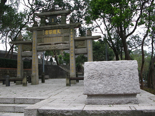 功維敘隧道叉路,已進入貓貍山公園內,步道四通八達,決定直上,稍後看見右側公園路旁有古老的牌坊,橫切過去參觀。H110m |
